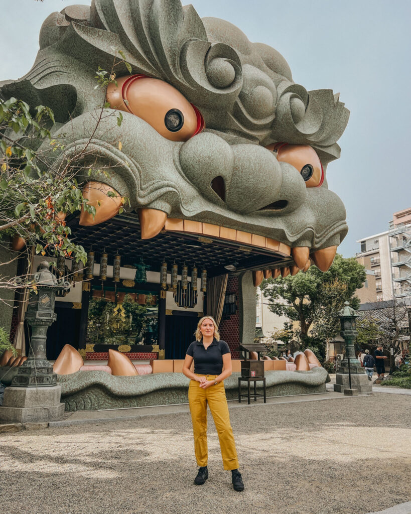 Namba Yasaka in Osaka features a massive lion statue, said to swallow evil spirits