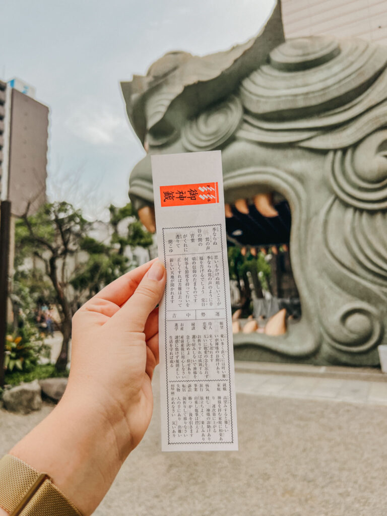 On your travels thereafter, you may need some luck, so you best get your fortune told! You can purchase a fortune reading on a paper called omikuji. On your omikuji, your fortune ranges from travel to business to relationships and love.
